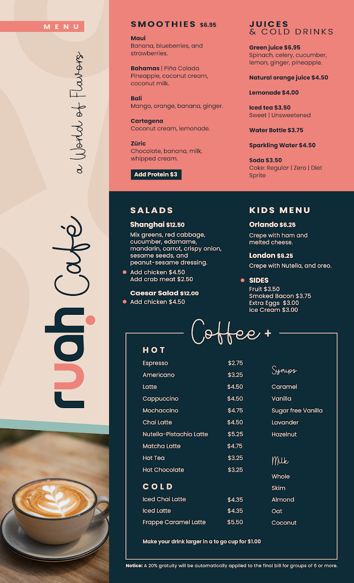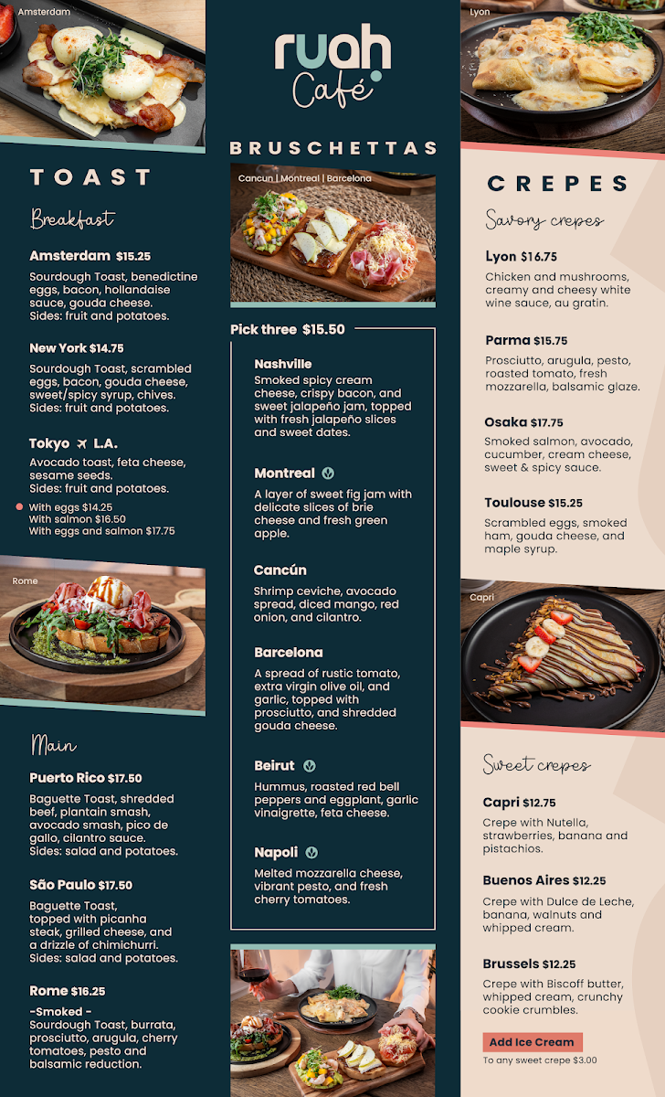 With a welcoming atmosphere and exceptional service, Ruah Café invites everyone to savor the love and passion infused in every meal. A visit here promises not just great food but a heartwarming experience to cherish.