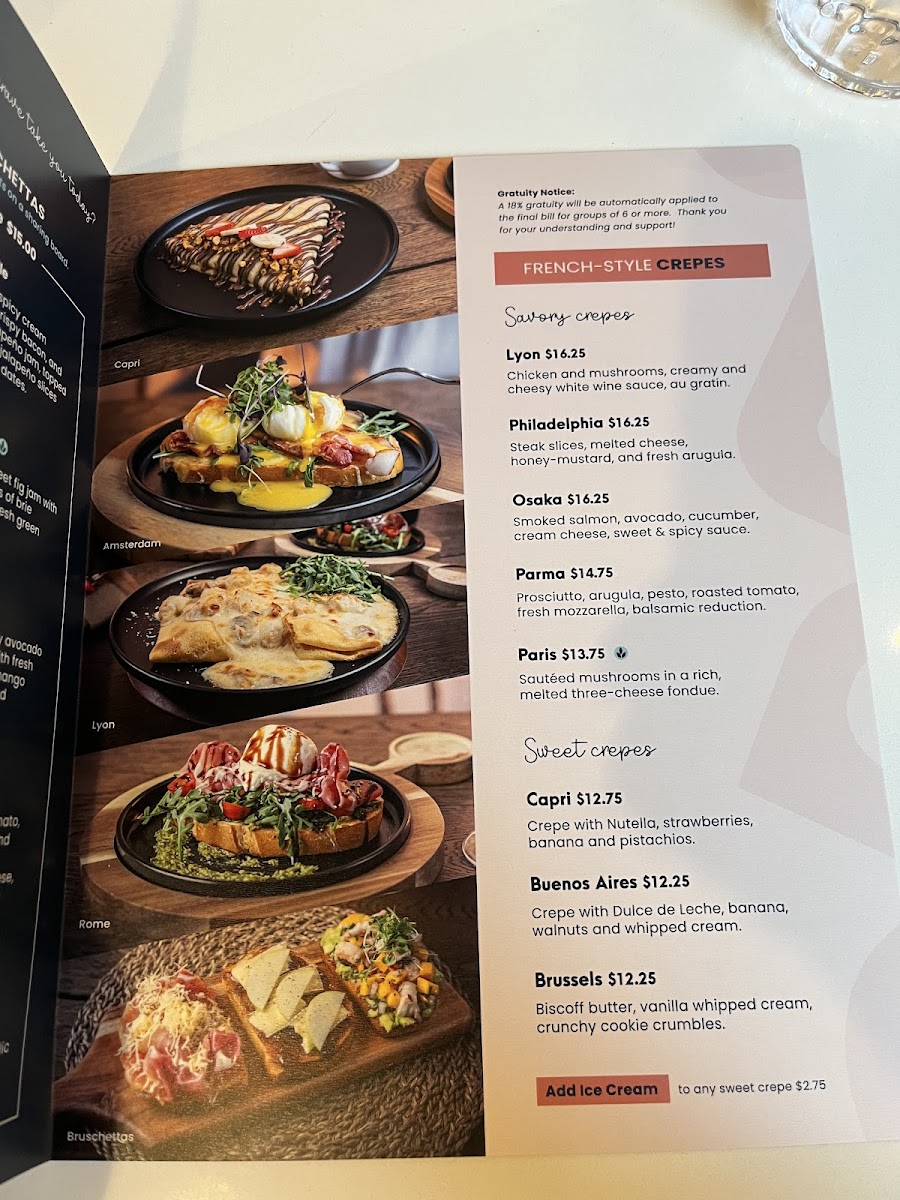 - The Capri crepe has gained notable praise for its astonishing flavors and generous portions.